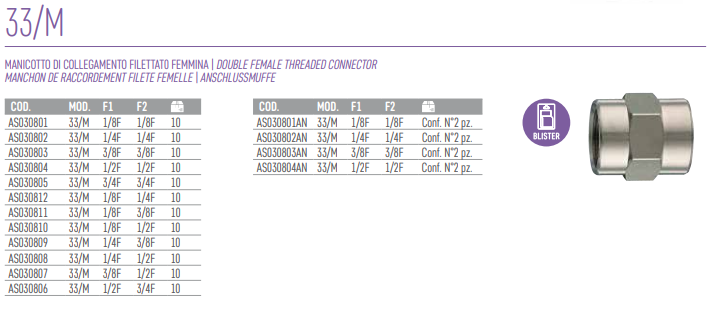 Acquista ora il tuo manicotto di collegamento filettato femmina 33/M e assicurati di avere sempre una connessione sicura e affidabile nei tuoi sistemi!
