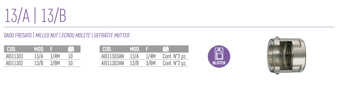 Dado Fresato 3/8 Maschio 13/A 13/B ANI Italy