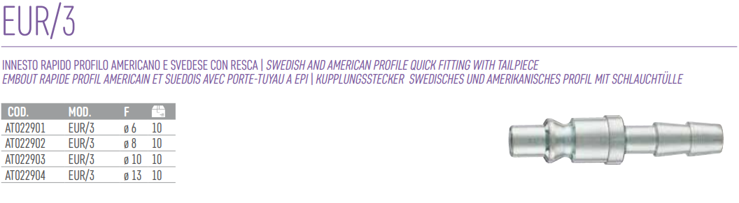 Descrizione: L’innesto rapido con profilo americano e svedese è un componente essenziale per il collegamento rapido e sicuro nei sistemi pneumatici e idraulici. Questo innesto è progettato per garantire una connessione affidabile e duratura, facilitando le operazioni di montaggio e smontaggio.
