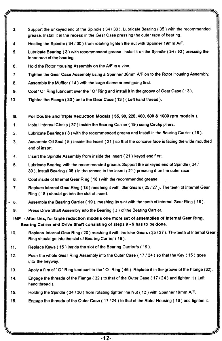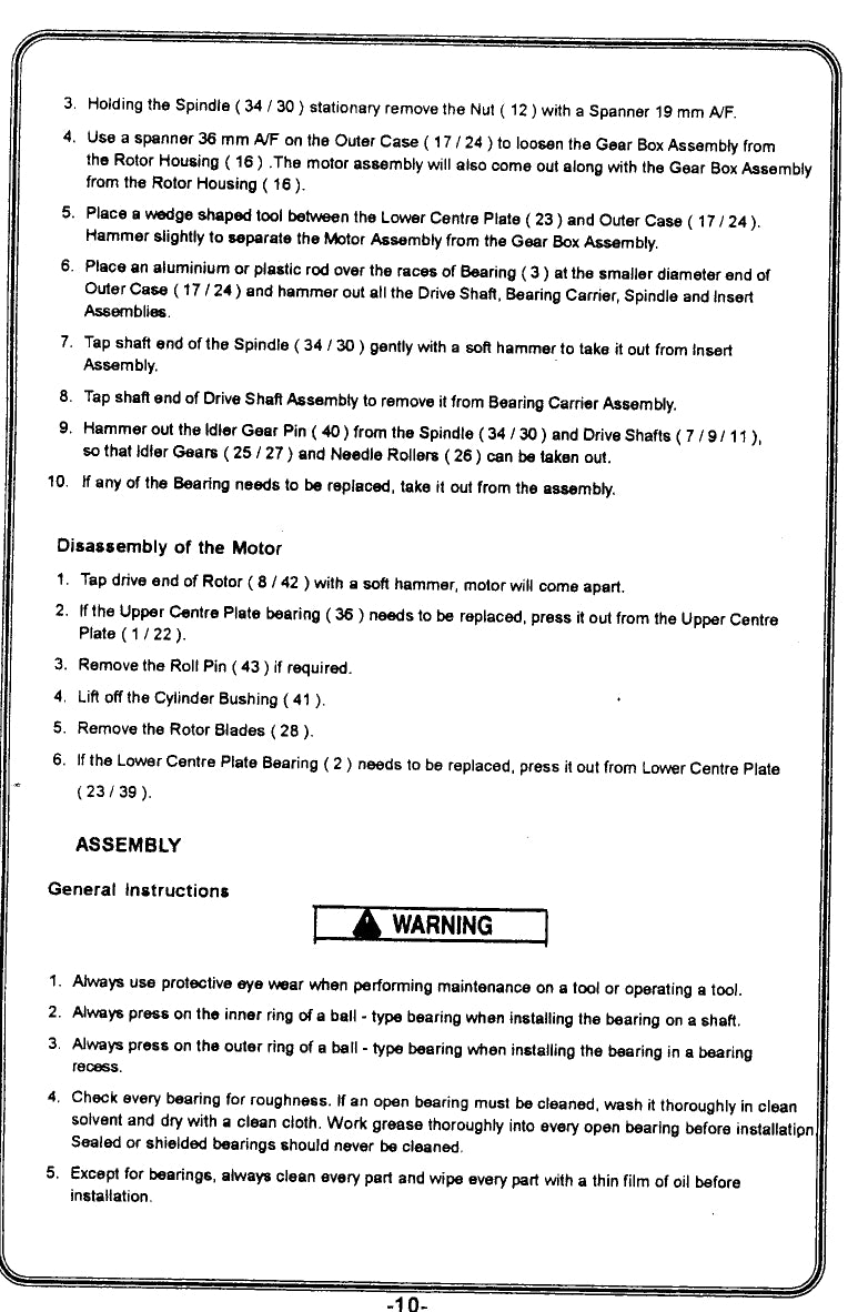 - Direzione di rotazione: Non reversibile (rotazione a destra)