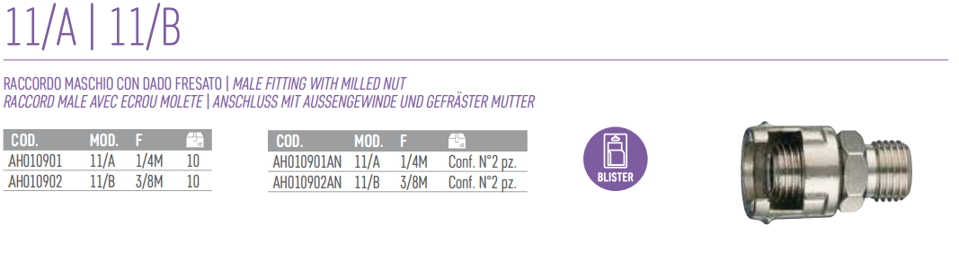 Raccordo Maschio 11/A con Dado Fresato ANI Italy