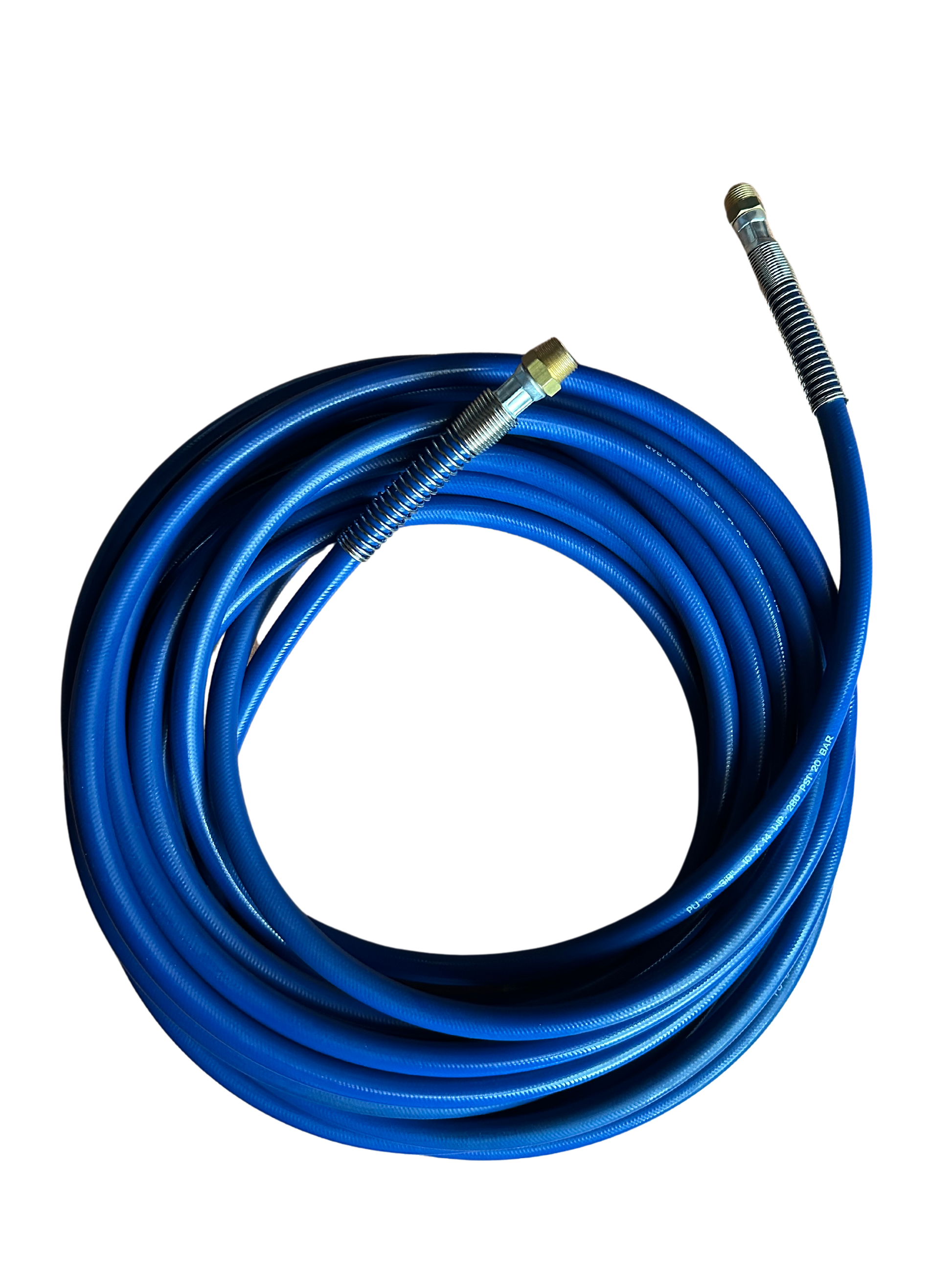 Descrizione: Il tubo intrecciato in poliuretano (PU) da 3/8" è progettato per applicazioni pneumatiche che richiedono resistenza e durabilità. Con una lunghezza di 15 metri, questo tubo blu è dotato di attacchi fissi in ottone maschio da 3/8", pressati e ricoperti con una calza elastica in acciaio per una maggiore protezione. Il BlueMax II è studiato per ottenere i migliori risultati dal tuo spruzzatore airless, grazie alla sua flessibilità e durata superiori.